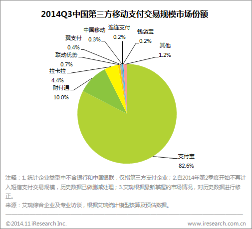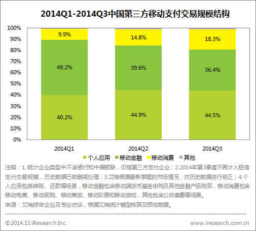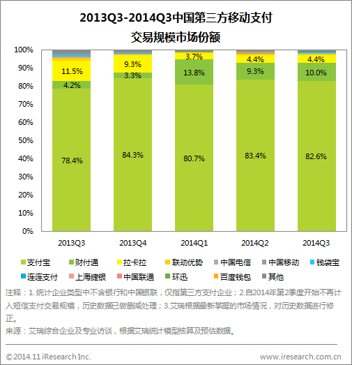2014Q3第三方移動支付交易規(guī)模為14332.7億元