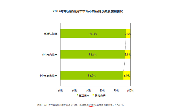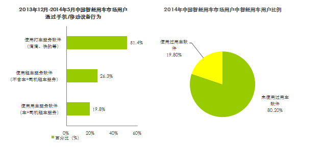 出租車用戶中有27.2%使用過智能用車,租車用戶中有44.7%使用過智能用車。未來智能用車和傳統(tǒng)租車的千億量級市場規(guī)模將為智能用車市場提供有力的發(fā)展空間。