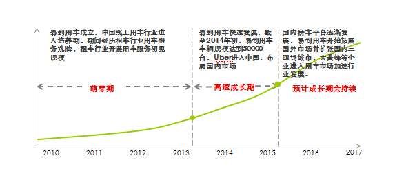 預(yù)計到2017年,中國移動互聯(lián)網(wǎng)市場規(guī)模將接近5000億。規(guī)?;咚侔l(fā)展的移動互聯(lián)網(wǎng)也給易到用車為代表的智能用車企業(yè)提供了良好的發(fā)展背景。而其中出行要素的變化改變了我們的生活方式,在出行方式各行業(yè)歷史上,除公共交通外的私人用車形勢,經(jīng)歷了從租車到出租車再到用車形式的轉(zhuǎn)變,使用戶在滿足出行的訴求基礎(chǔ)上需求更加優(yōu)質(zhì)和靈活的出行服務(wù),用車服務(wù)應(yīng)運而生。移動互聯(lián)網(wǎng)高速發(fā)展,便捷的智能用車服務(wù)也逐漸興起。