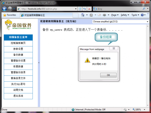 4,采用分組備份,即使是超過(guò)1G的數(shù)據(jù)庫(kù)也可以正常備份。