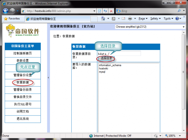 如果是在其他機(jī)器上恢復(fù),需要將“帝國(guó)備份王”的程序以及bdata目錄下存放備份數(shù)據(jù)的目錄一起上傳至新的機(jī)器上。