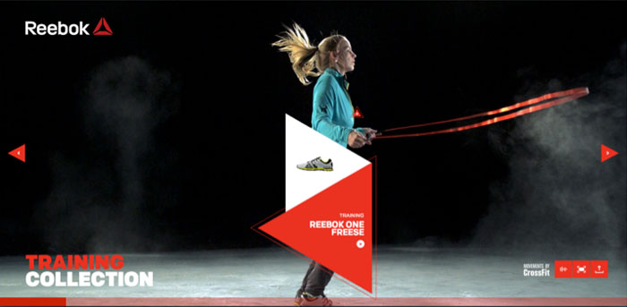Reebok Fall/Winter ’14 Lookbook 頁(yè)面中,整個(gè)頁(yè)面都有長(zhǎng)時(shí)間動(dòng)態(tài)效果,用戶注意力基本停留在頁(yè)面中的人物動(dòng)作上。而其中的產(chǎn)品展示部分,雖然也有動(dòng)效引導(dǎo),但用戶的注意力都在想看完所有場(chǎng)景上,沒(méi)有多余的注意力給頁(yè)面中的產(chǎn)品。不過(guò),這樣的頁(yè)面安排在傳統(tǒng)企業(yè)網(wǎng)頁(yè)中是常見(jiàn)也合理的。因?yàn)檫@個(gè)頁(yè)面的核心目的就是品牌宣傳,讓用戶感受到Reebook是多么酷的一個(gè)運(yùn)動(dòng)品牌,根本也沒(méi)指望頁(yè)面中的產(chǎn)品鏈接能夠帶來(lái)多少銷量。而多數(shù)互聯(lián)網(wǎng)產(chǎn)品的此類頁(yè)面還要解決功能闡述,所以要慎重設(shè)計(jì)。