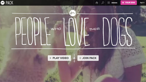 當(dāng)然,對比不僅限于色彩,文字同樣存在對比。文字與圖像相互配合,才能達到出人意表的效果。例如第一個案例,Packdog網(wǎng)站的設(shè)計,大圖作為背景,用色濃郁,文字則正好相反,輕薄而大小錯落。這些對比強烈的元素組合在一起令人印象深刻。