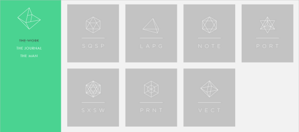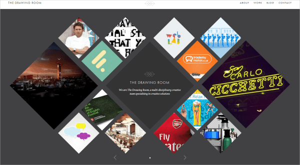 個(gè)人非常喜歡這個(gè)布局,簡(jiǎn)單但又不失有趣。這家工作室將自己的作品以大小不同,相互堆砌的菱形展示于頁(yè)面之上。最中央的菱形為公司標(biāo)志,表現(xiàn)并不突兀,不會(huì)分散對(duì)作品的注意力。把鼠標(biāo)懸停在任意一個(gè)菱形上時(shí),其中會(huì)顯示該作品的說明介紹。這個(gè)簡(jiǎn)單的單頁(yè)網(wǎng)站布局簡(jiǎn)約而不失創(chuàng)意,同時(shí)使用簡(jiǎn)單方便。
