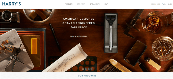 這個(gè)網(wǎng)站具有非常令人愉悅的體驗(yàn)。其設(shè)計(jì)師充分運(yùn)用了網(wǎng)格,非常適合其目標(biāo)市場(chǎng)。開放、干凈的結(jié)構(gòu)化設(shè)計(jì)帶來了宜人的用戶體驗(yàn)。作為一家賣男士剃須刀的網(wǎng)站,Harry's所采用的圖片都非常精致,具有男人味道的同時(shí)又不讓人感覺粗野。