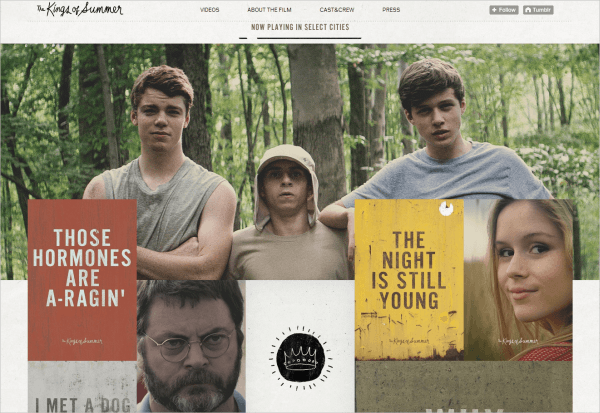 這個(gè)Tumblr網(wǎng)站的布局通過照片、偶現(xiàn)的GIF和電影中的古怪臺(tái)詞充分展現(xiàn)出了這部電影的魅力。其采用了結(jié)構(gòu)化但并不統(tǒng)一的布局,滾動(dòng)瀏覽時(shí)頗為有趣。手寫風(fēng)格的標(biāo)題也有助于打造類似剪貼簿的感覺。獨(dú)特的內(nèi)容塊布局形成了很有意思的視覺效果,照片和GIF彼此時(shí)而重疊,引導(dǎo)用戶的眼光穿梭于網(wǎng)站之中。作為這部電影的相關(guān)網(wǎng)站,其應(yīng)當(dāng)能傳遞出這部長(zhǎng)篇電影復(fù)雜的個(gè)性。雖然我沒看過這部電影,但通過這個(gè)網(wǎng)站卻能對(duì)其略知一二。