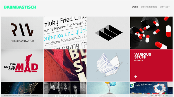 Davy Rudolph 作品集的網(wǎng)格布局簡(jiǎn)單、簡(jiǎn)約,讓用戶感到非常直接而自然。其每個(gè)頁(yè)面都只有兩種顏色,并且為當(dāng)前頁(yè)面所獨(dú)用。在點(diǎn)擊任一項(xiàng)目作品后,作品展示將變成頁(yè)面主角,同時(shí)主導(dǎo)航面會(huì)消失。對(duì)于一個(gè)作品集網(wǎng)站采用這種方法,我個(gè)人最贊賞的是其既有個(gè)性,同時(shí)個(gè)性又不至于搶占設(shè)計(jì)師作品的風(fēng)頭。