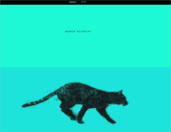 Andrew McCarthy的作品集采用了獨(dú)具一格的布局方式。頁(yè)面上充斥著彩色的條帶,有關(guān)設(shè)計(jì)師的詳細(xì)信息則需要向下滾動(dòng)鼠標(biāo)查看。滾動(dòng)鼠標(biāo)時(shí),會(huì)有一個(gè)像素化的貓形定格動(dòng)畫隨之運(yùn)動(dòng)。這一簡(jiǎn)單的創(chuàng)意所帶來的動(dòng)感讓我大愛不已。另外,這個(gè)網(wǎng)站也需要依仗用戶的交互操作。