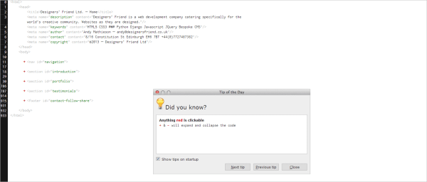 跟你腦子里想的設(shè)計(jì)師網(wǎng)站有點(diǎn)不一樣是吧。Designer's Friend看起來更像是網(wǎng)站背后的HTML代碼。你所需知道的所有內(nèi)容都含在代碼里,標(biāo)簽則是標(biāo)題。其中“Tip of the Day”這個(gè)方框的設(shè)置非常巧妙,其能夠引導(dǎo)用戶瀏覽整個(gè)網(wǎng)站。