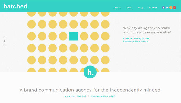 Hatched 的布局之精髓在于橫跨整個(gè)屏幕的導(dǎo)航欄和各個(gè)部分,這一布局既大膽又開放。其響應(yīng)式的導(dǎo)航欄非常有趣。如果在小屏幕上,看起來就會(huì)有點(diǎn)笨拙,但如果在這里,其導(dǎo)航欄(包括社交網(wǎng)絡(luò)按鈕)僅占了一個(gè)菜單按鈕的空間。