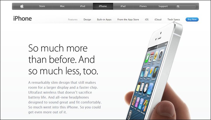 單個(gè)長(zhǎng)頁面的設(shè)計(jì)一度不受人待見(無論是客戶還是設(shè)計(jì)師),但現(xiàn)在整個(gè)網(wǎng)絡(luò)隨處可見。一個(gè)合理的解釋是,用戶現(xiàn)在早已習(xí)慣于使用鼠標(biāo)滾輪了,比起在多個(gè)頁面間來回查看,用滾輪上下瀏覽要省事得多。包括蘋果在內(nèi)的一些知名大公司也使用了相當(dāng)長(zhǎng)的頁面來展示產(chǎn)品,獲得了很不錯(cuò)的效果。