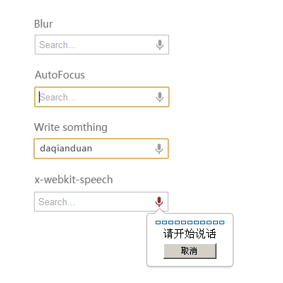 x-webkit-speech,這個(gè)大概不必多解釋了,webkit核的瀏覽器(如Chrome)特有的語音識別工具,給input裝上也是再好不過的了,話說Google也給自己的搜索框裝上這個(gè)工具。