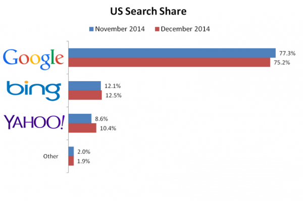 Google在美國(guó)搜索市場(chǎng)的份額跌落至自2008年以來(lái)的最低值,更關(guān)鍵的是,雅虎則創(chuàng)下自2009年以來(lái)的最高值。