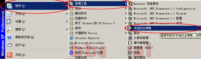 第一步:打開開始,程序,管理工具,本地安全策略如圖: