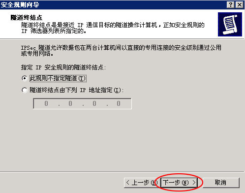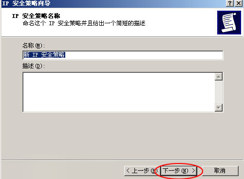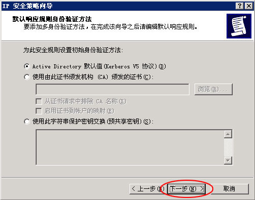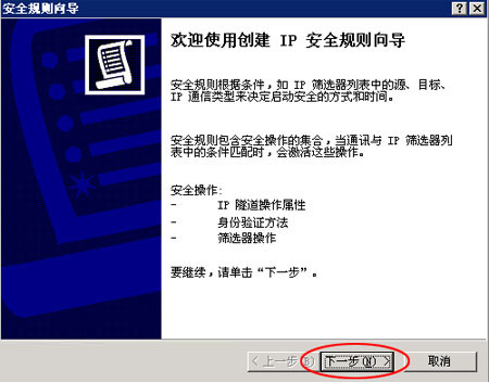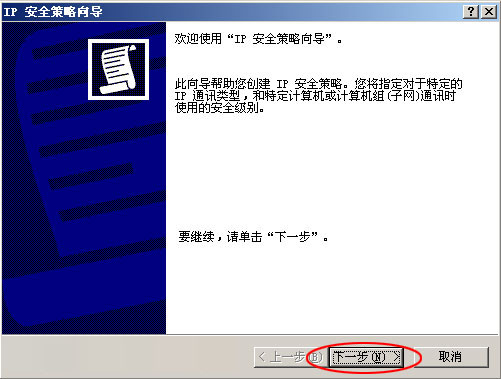 第三步:在“IP安全策略向?qū)?rdquo;中下一步如圖: