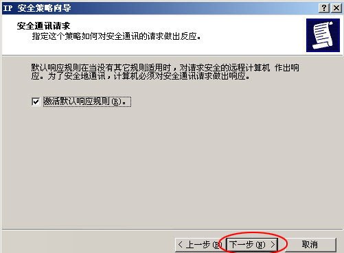 第五步:選中“激活默認(rèn)響應(yīng)規(guī)則”,點(diǎn)擊下一步