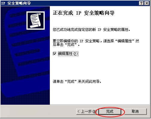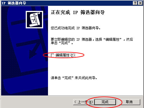 第二十一步:在完成IP篩選器中不選中編輯屬性,然后點(diǎn)完成
