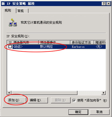 第九步:取消“<動(dòng)態(tài)> 默認(rèn)響應(yīng)”的安全規(guī)則,并點(diǎn)擊“添加(D)”