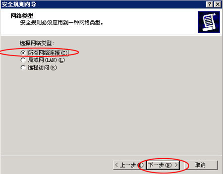 第十二步:在網(wǎng)絡(luò)類型中選擇“所有網(wǎng)絡(luò)連接”,并點(diǎn)下一步