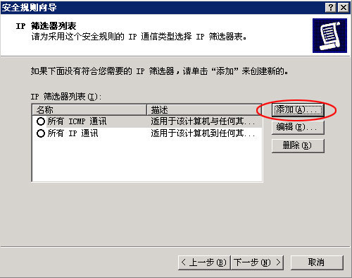 第十三步:在IP篩選器列表中,點(diǎn)擊“添加(A)”