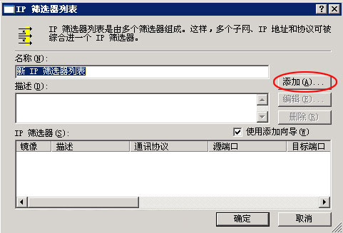 第十四步:在彈出的IP篩選器列表中點(diǎn)擊“添加(A)”