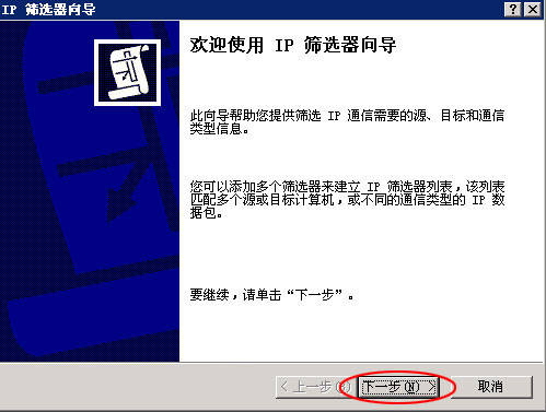 第十五步:在歡迎使用IP篩選向?qū)е兄苯狱c(diǎn)擊下一步