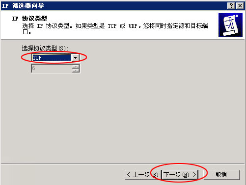 第十九步:在IP協(xié)議類型中選擇TCP,并點(diǎn)下一步