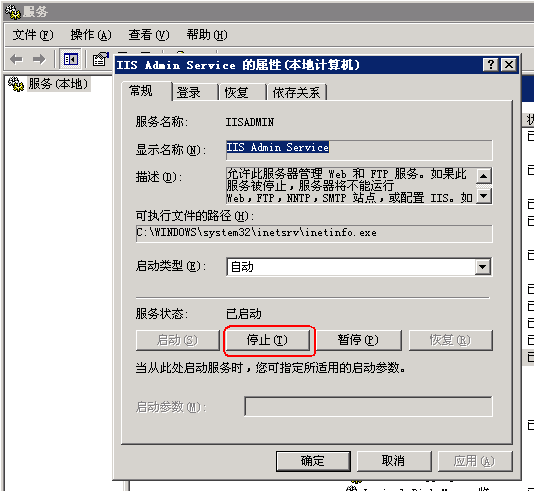 3. 在 "管理工具 >服務(wù)" 中,停止 "IIS Admin Service"。