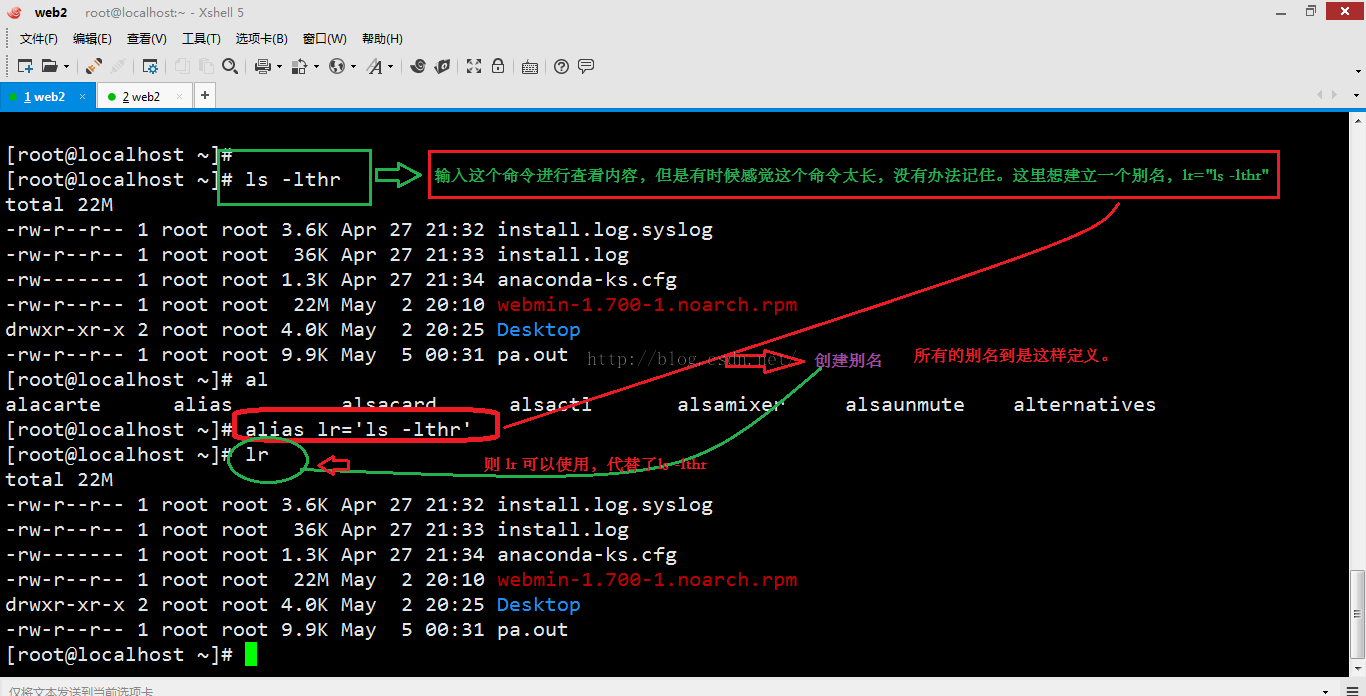 3.3、永久設(shè)置cd /web && ls 命令別名為 web